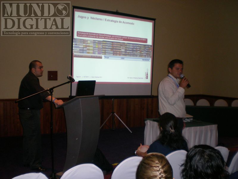 Video Podium de madera en color metálico para proyectar logotipos e información reelevante.