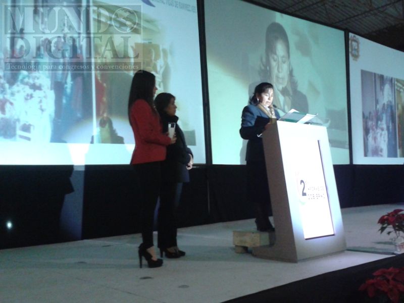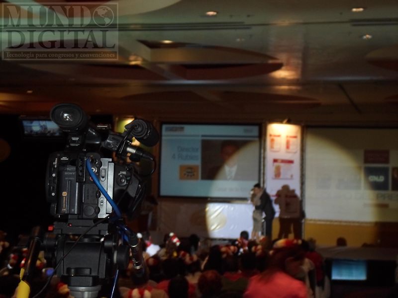 Consta dependiendo el tamaño de la audiencia de una a varias pantallas de proyección con proyectores de 5000 lm enlazados entre si para ya sea complementar la información o mostrar la misma imágen en las pantallas